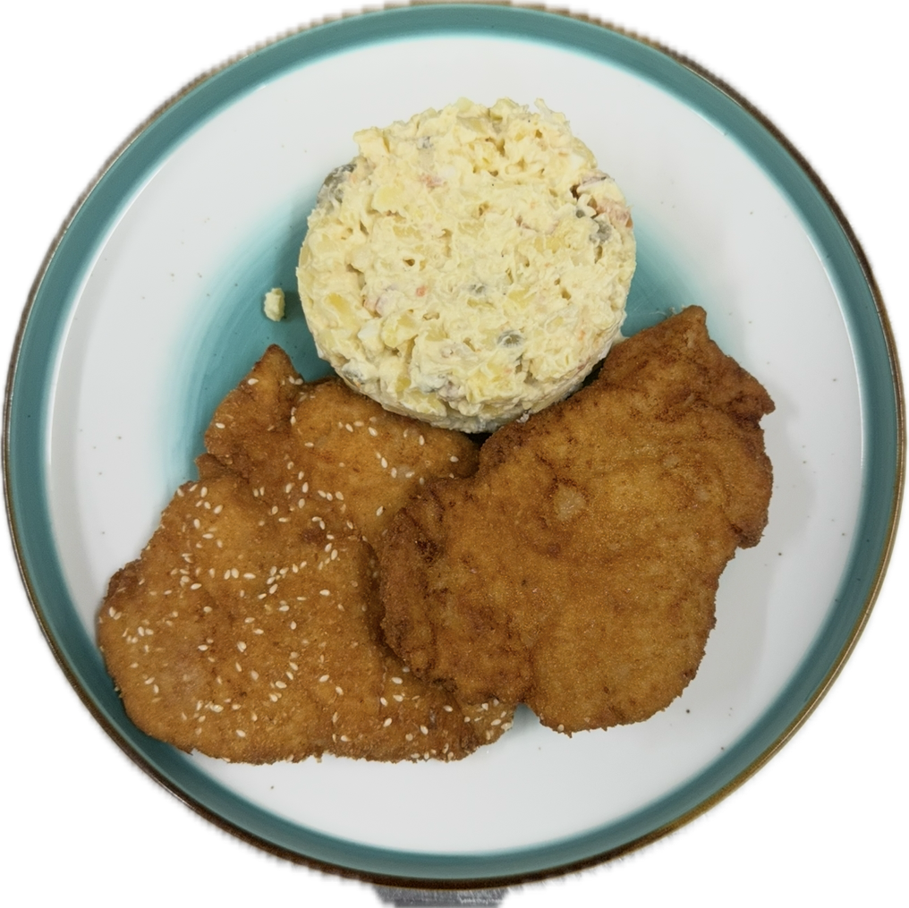 Sviečkovica, br. karé, kuracie prsia, americká omáčka, hranolky, ryža, čerstvá zelenina