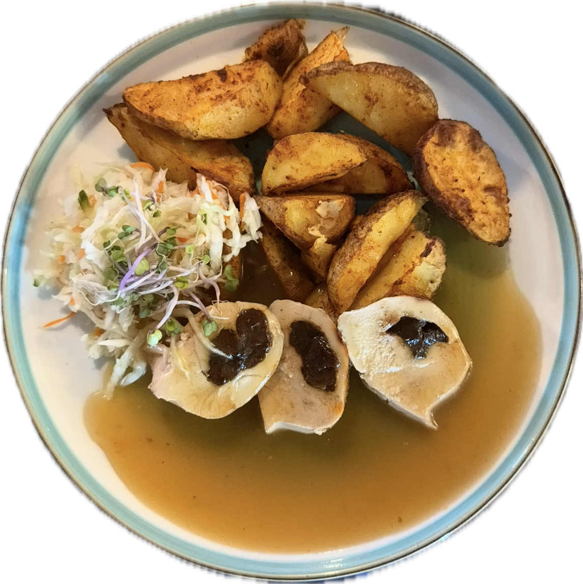 Kuracie prsia so slivkou, pečené zemiaky, šalát