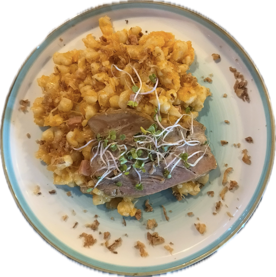 Pečená krkovička (sous vide) na strapačkách s kyslou kapustou